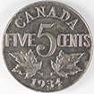 | FC | 22624 | 1934 | CANADA | 5 Cents | Maple Leaves | George V | Nickel | 29 | About Uncirculated | $50.00 | FC | 38765 | 1934 | CANADA | 5 Cents | George V | Maple Leaves divides denomination and date | Nickel | 29 | About Uncirculated | $50.00 |