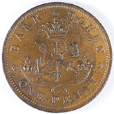 | FC | 36146 | 1842 | CANADA | 1 Penny Token | Bank of Montreal | Bronze | PC-2B | Extremely Fine | $35.00 | ||||||