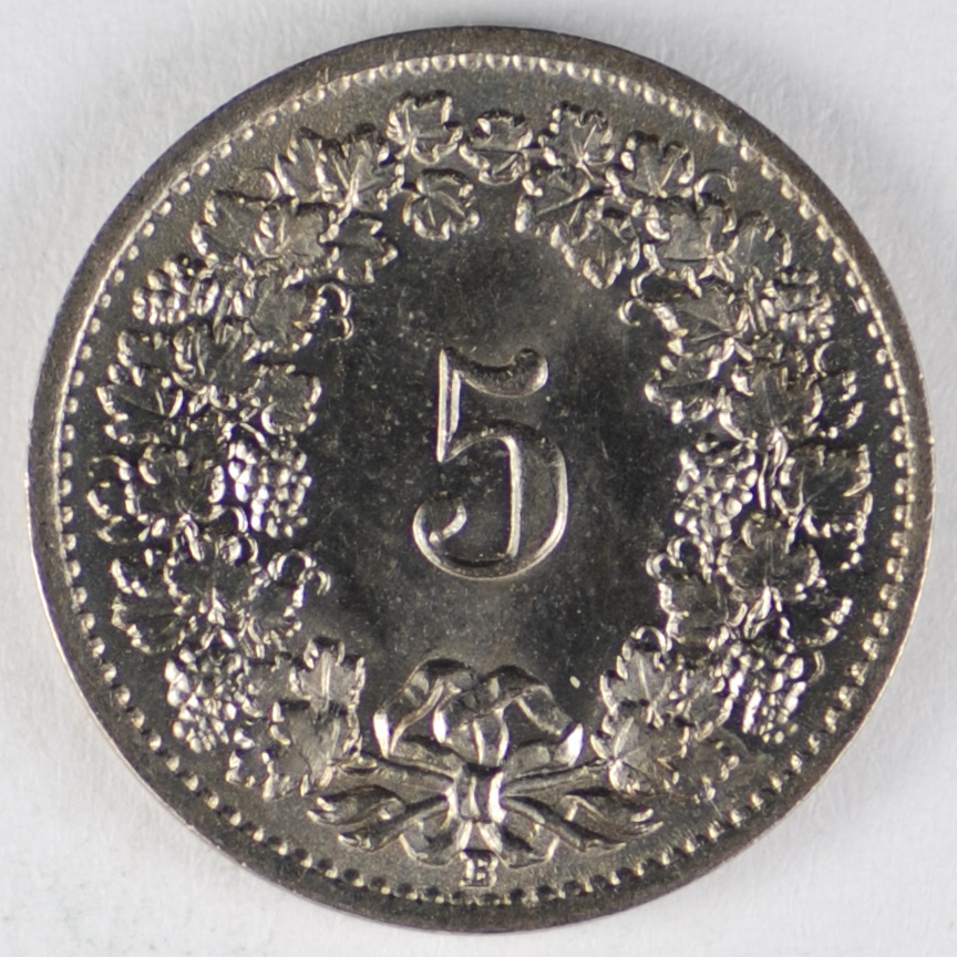 | FC | 9731 | 1939-B | SWITZERLAND | 5 Rappen | Value within Wreath | Nickel | 26b | Uncirculated | $10.00 | |||||