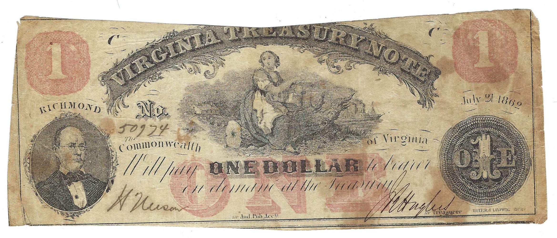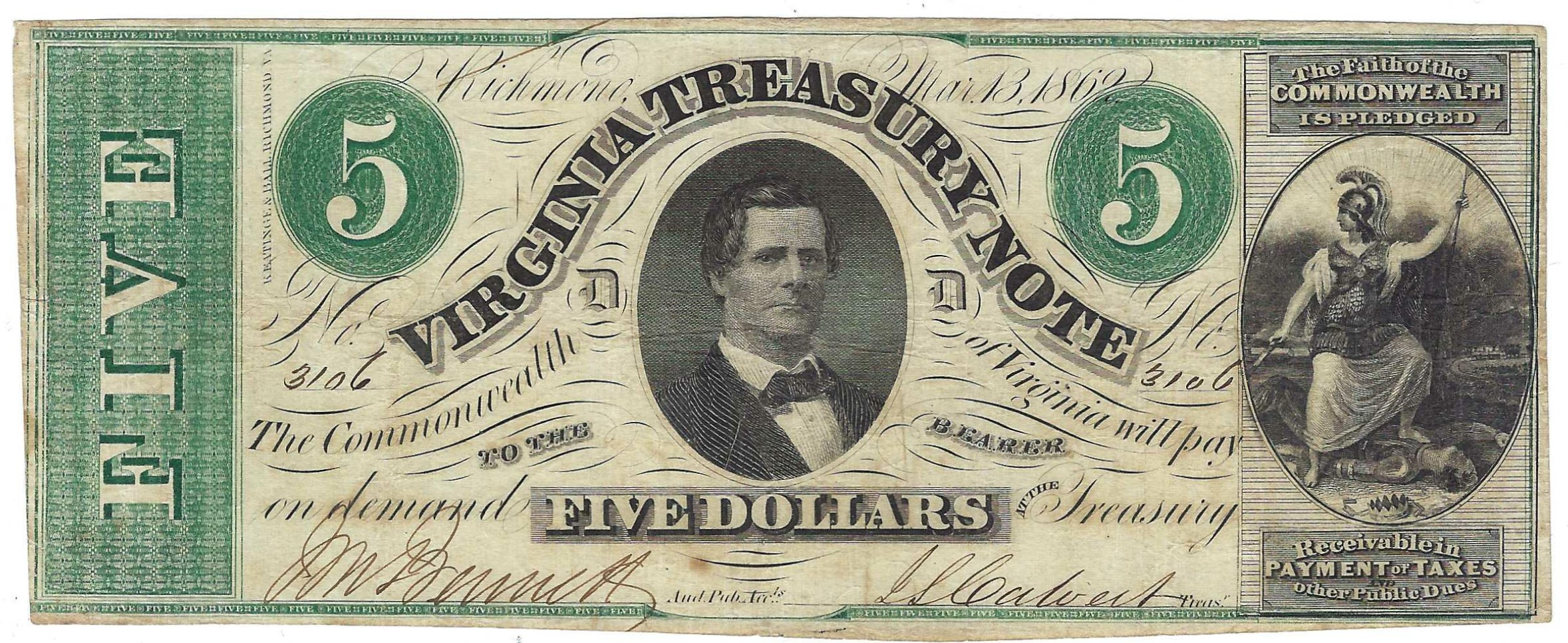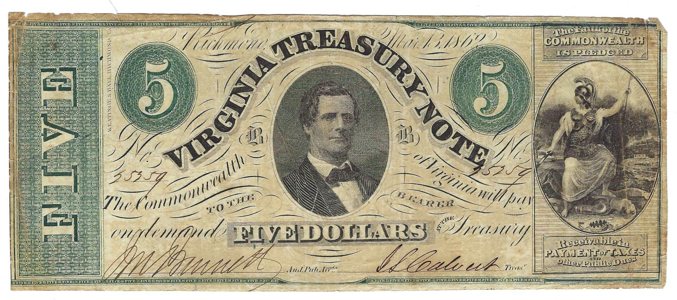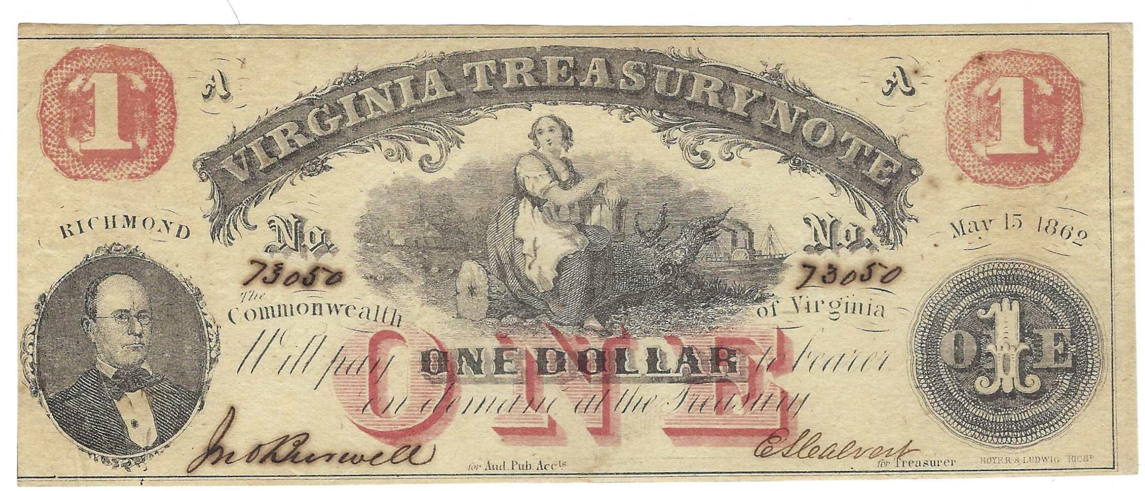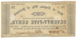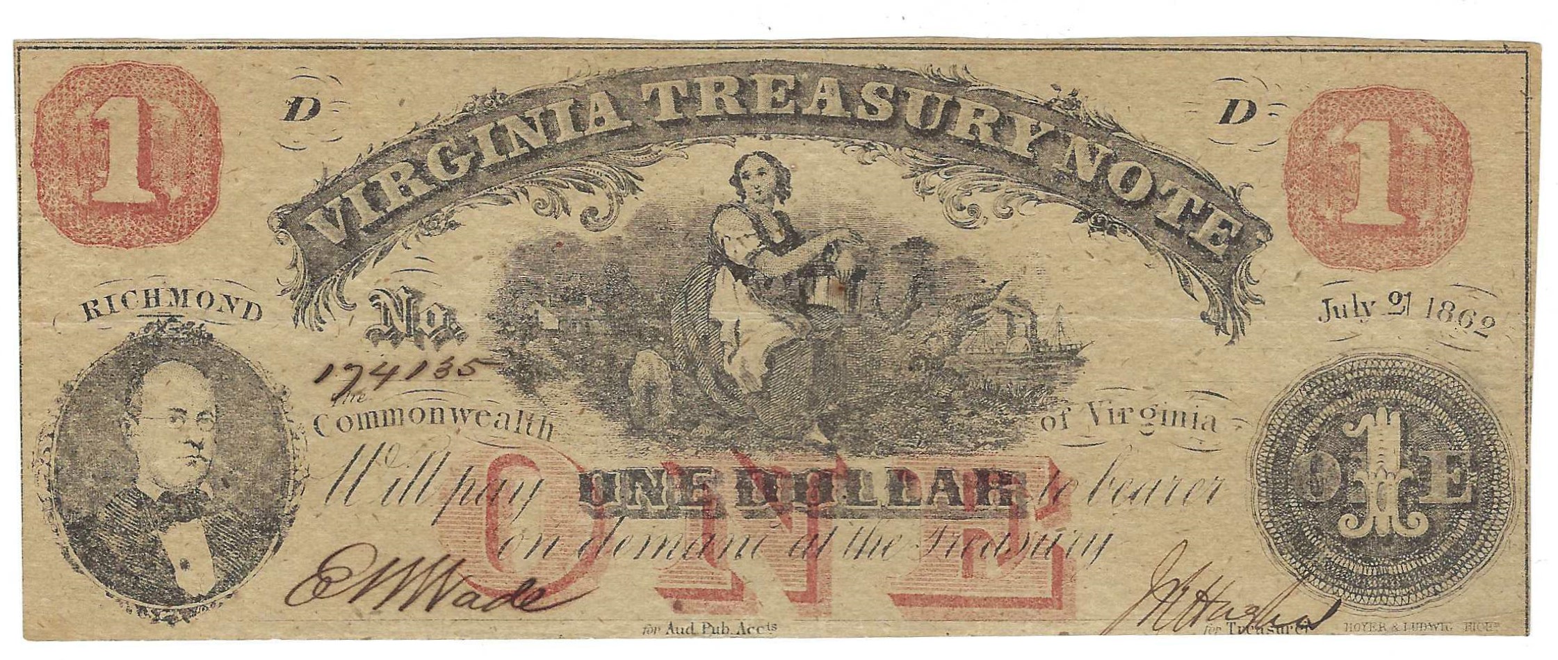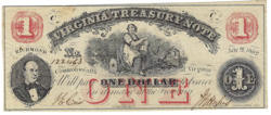 Virginia Treasury Note, Richmond; July 21, 1862 |