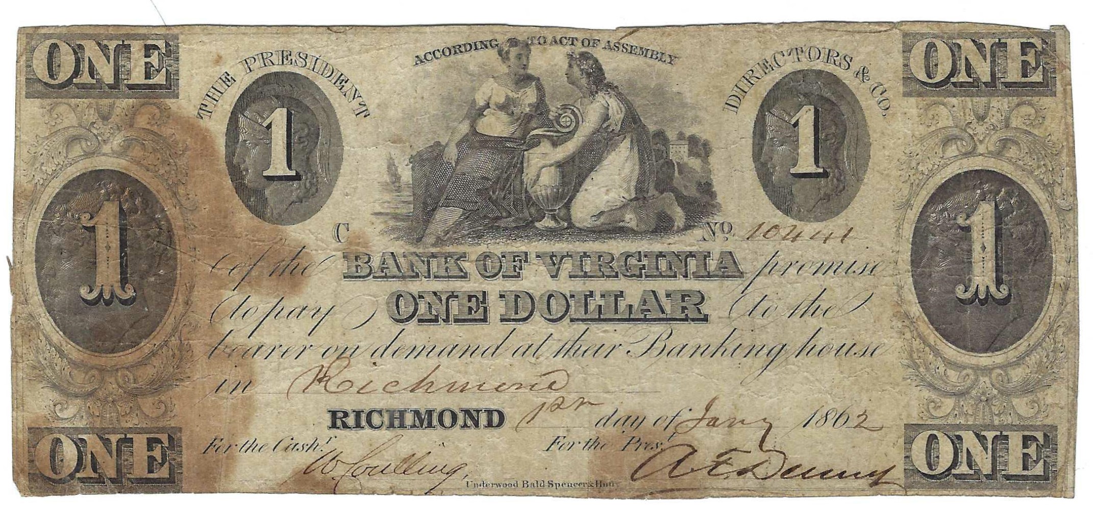 Virginia Treasury Note, Richmond; March 13, 1862 |