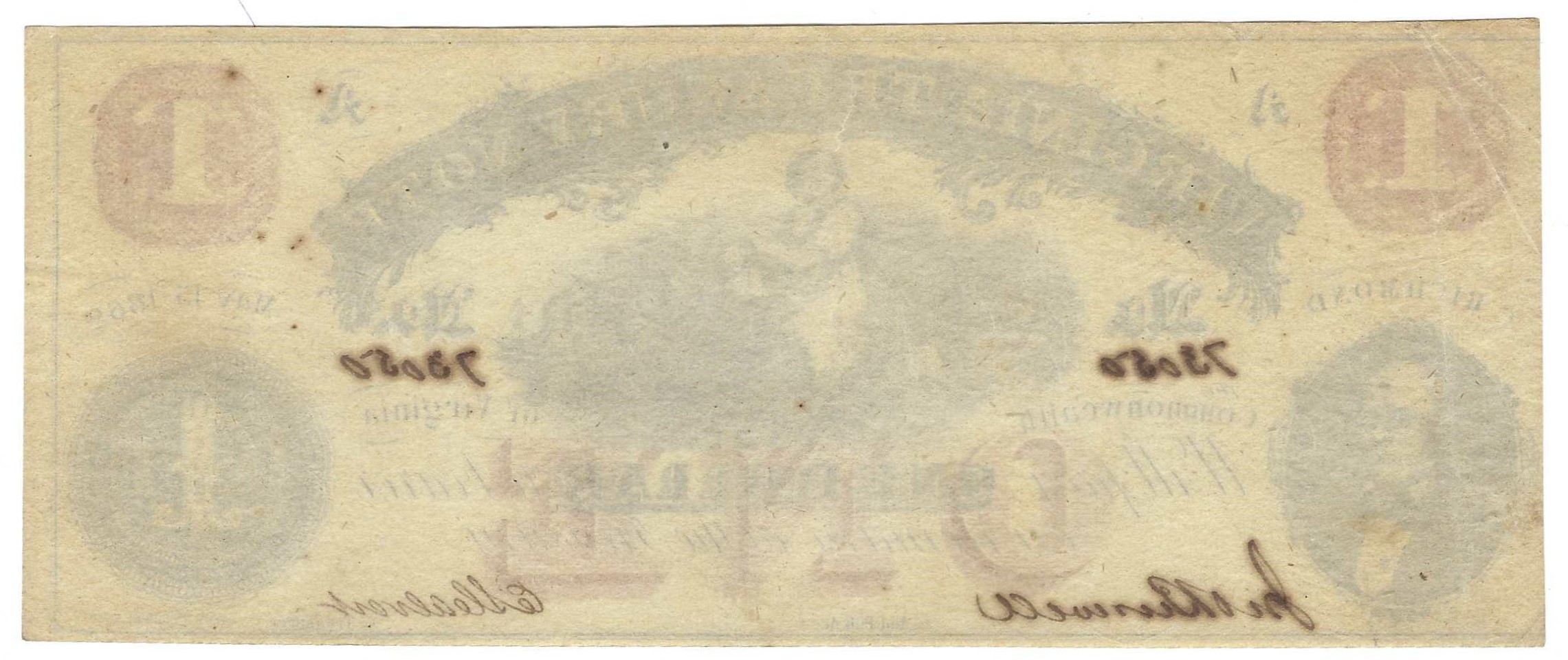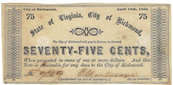 Virginia Treasury Note, Richmond; October 15, 1862 |