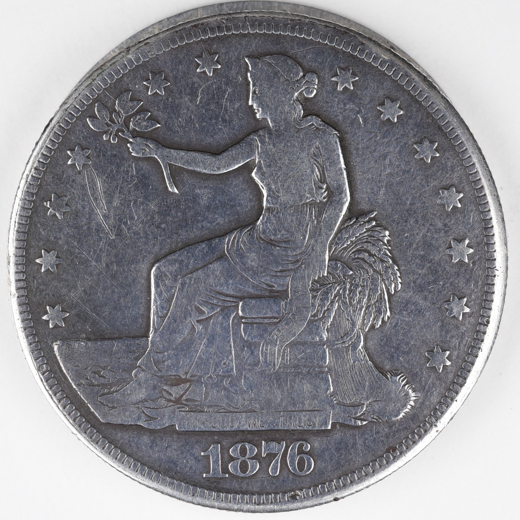 1875-S | Trade Dollar | Scratches under Olive Branch on Obverse | Net Extremely Fine | $300.00 | ||